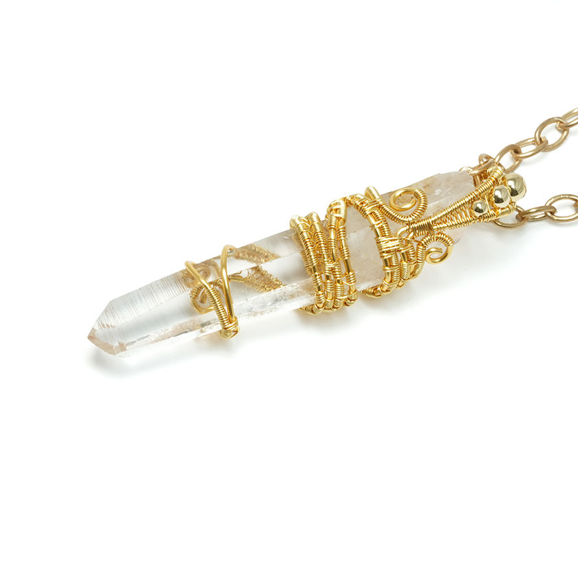 喜马拉雅白水晶手工缠绕吊坠